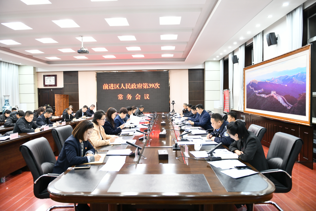 10月31日,区委副书记、区长徐永志主持召开前进区政府第39次常务会议。会议传达学习习近平总书记在庆祝中华人民共和国成立76周年招待会上的重要讲话精神、《求是》杂志发表的习近平总书记重要文章《中华民族共同体的形成和发展是人心所向、大势所趋、历史必然》、习近平在听取新疆维吾尔自治区党委和政府工作汇报时的讲话精神。传达学习党的二十届四中全会精神、《中共中央关于制定国民经济和社会发展第十五个五年规划的建议》及说明。传达省、市政府常务会议精神,听取全区“十五五”规划进展、秸秆禁烧管控、乡村振兴资金使用等工作情况汇报,安排部署下步工作。