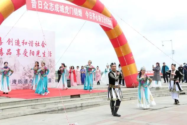 活动分为两个部分,禁毒知识宣传互动和文艺汇演,通过悬挂禁毒宣传横幅、发放禁毒宣传资料、现场讲解等方式,运用通俗易懂的语言向群众讲解毒品相关知识、吸毒的成因、贩毒的严重后果、禁毒相关法律法规以及林则徐虎门销烟等百年禁毒史。前进区港湾街道精心组织,为现场群众带来了一场精彩的文艺演出,不仅丰富了人民群众的业余文化生活,而且营造了浓厚的禁毒宣传氛围,教育广大群众时刻谨记“珍爱生命、拒绝毒品”的同时呼吁大家铭记历史,勿忘国耻。