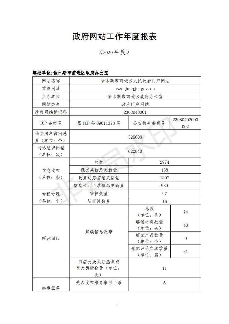 2020年前进区人民政府网站工作年度报表