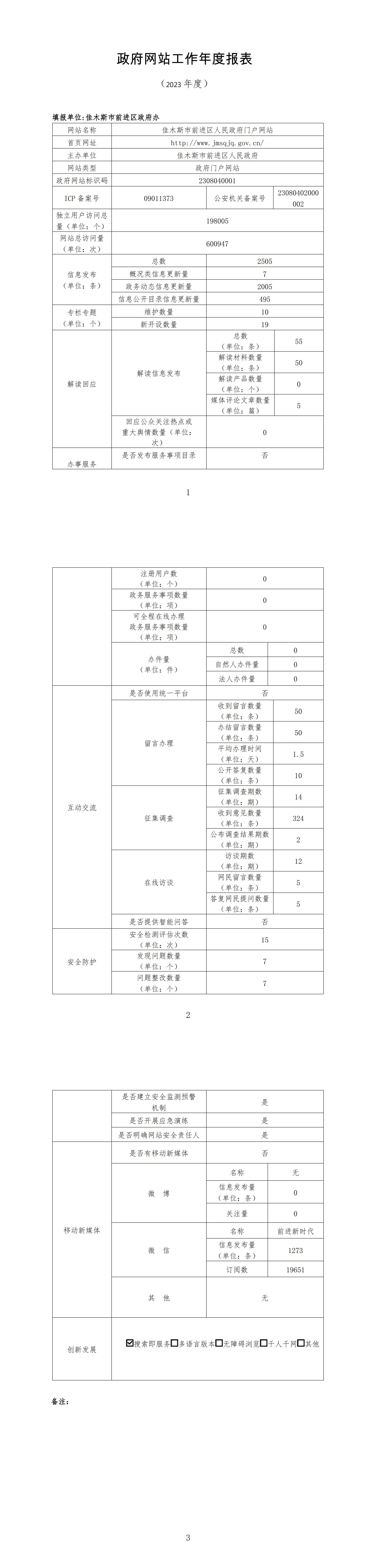 前进区人民政府网站工作年度报表